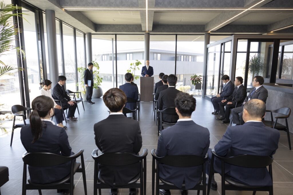 エクワインレーシングとして初めての入社式を無事に執り行いました。 BTC卒業予定の1名(4月20日入社予定)を除く、5名の新入社員を迎えました。 また、むかわ町長をはじめ、農協理事、苫小牧信用金庫支店長など、多くの来賓の皆様にご臨席いただき、心より御礼申し上げます。 これからも地域とともに歩み、むかわ町に根ざした企業として、新入社員とともに成長してまいります。